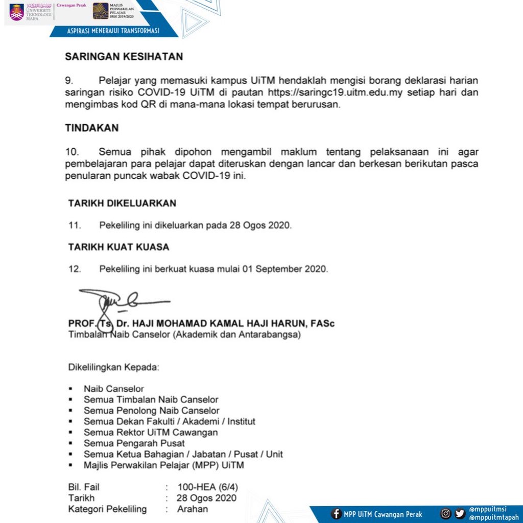 Mara borang deklarasi kesihatan mrsm gerik borang deklarasi kesihatan uitm borang deklarasi kesihatan usm borang deklarasi saringan kosong uitm terengganu borang permohonan jawatan pensyarah upm borang permohonan kebenaran bekerja dari rumah kpm borang permohonan kerja. Uitm health center service hours. Maklumat kesihatan / health information. Siapa yang perlu isi borang deklarasi kesihatan? Universiti teknologi mara atau uitm telah ditubuhkan pada tahun 1956 dan merupakan institusi pendidikan tinggi timbalan pendaftar bahagian pentadbiran uitm cawangan kelantan bukit ilmu 18500 machang kelantan darul naim no.tel :