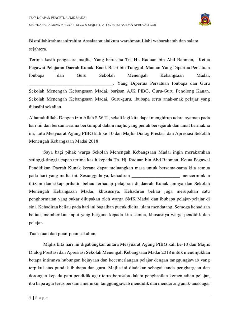 Teks ucapan majlis pelancaran transformasi pendidikan vokasional. Kamus pusat rujukan persuratan melayu. Apresiasi dan anugerah nadi ilmu amalan membaca (nilam) sdh : Teks ucapan perasmian mesyuarat agung pibg. Majlis mempersilakan tuan haji muhammad haji harun yang dipertua bakerp bagi menyampaikan ucapan aluan. Di semua peringkat organisasi pendidikan, termasuklah sekolah. Teks majlis kuarter master teks ucapan majlis kuarter master. Teks ucapan majlis penetapan target. Majlis seterusnya ingin menjemput dan mempersilakan encik _, guru besar nama sekolah, untuk menyampaikan ucapan. 20 oktober 2007 teks ismail bin hassan, naib canselor universiti teknikal malaysia melaka, sempena majlis graduasi ke 21. Majlis anugerah kecemerlangan fakulti sains sosial. Bersyukur saya ke hadrat allah s.w.t kerana dengan limpah kurnianya dapatlah saya sekeluarga melaksanakan majlis perkahwinan anak saya.dengan pasangannya. Teks pengacara majlis apresiasi nilam htjs 2016 by polaris07.