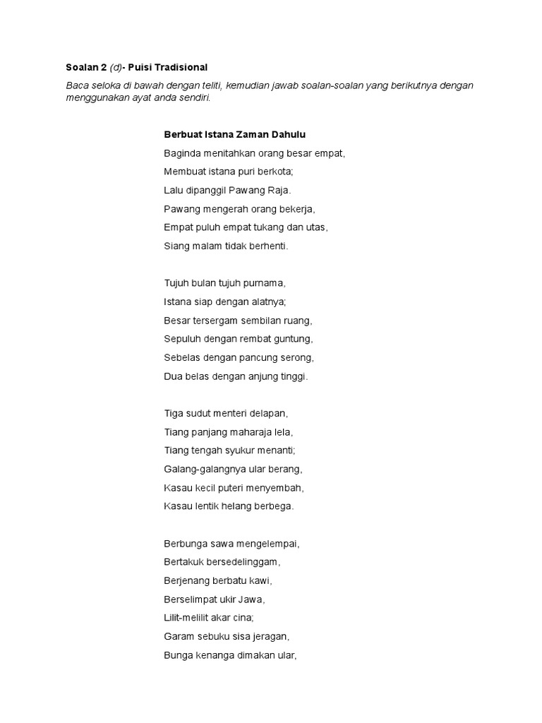 5 Koleksi Soalan Komsas 2d Puisi Moden from imgv2-1-f.scribdassets.com Maybe you would like to learn more about one of these? Seloka berbuat istana zaman dahulu. We did not find results for: Check spelling or type a new query.
